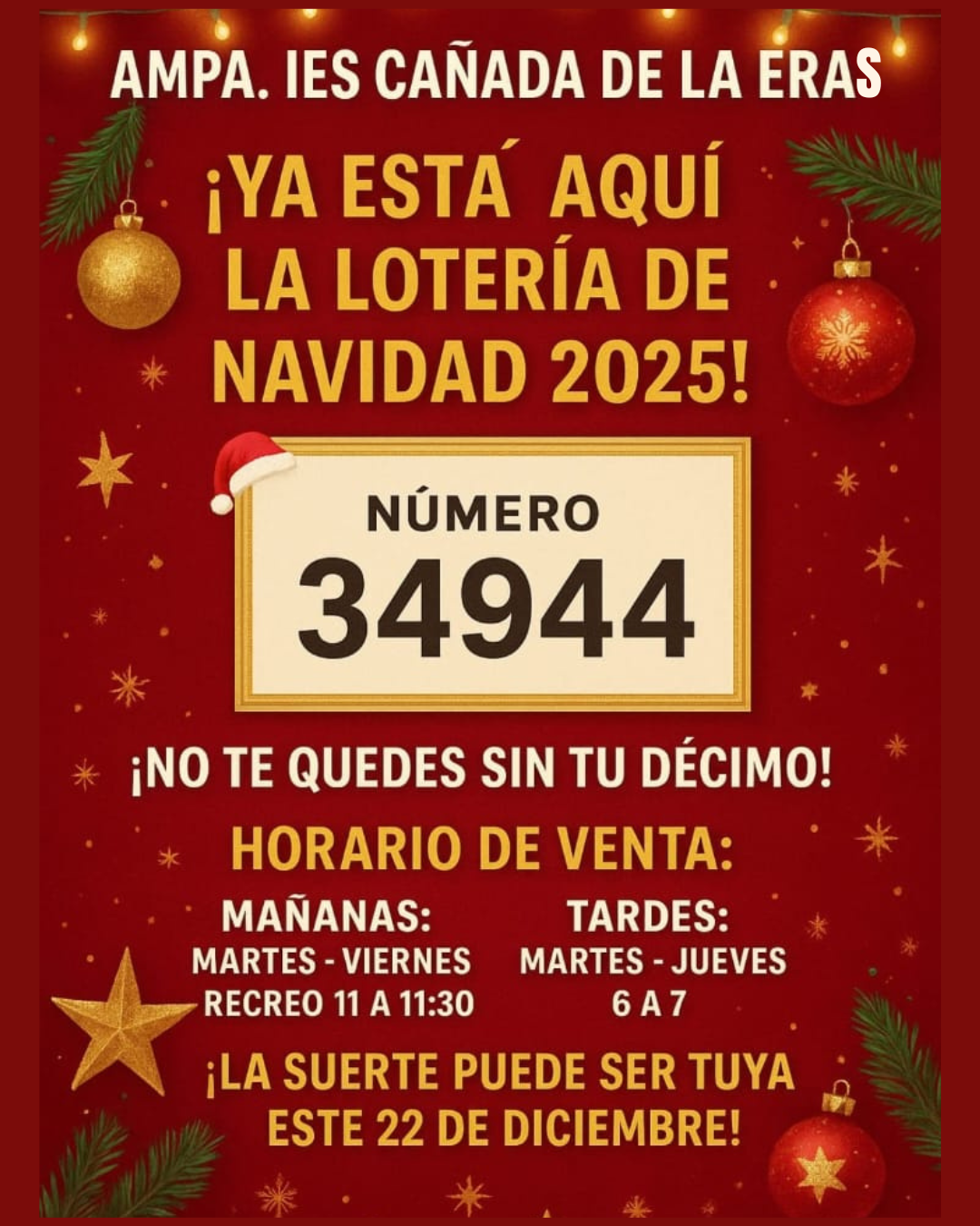 Si aún no forman parte del AMPA, anímense y formen parte de la comunidad educativa de nuestro instituto. Además, si se asocian antes del 30 de noviembre, pueden participar en el sorteo de un décimo de la lotería de Navidad.